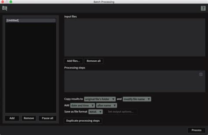 In this area, you can define the specific processing chain that will be applied sequentially to each file in the Input Files area above.
