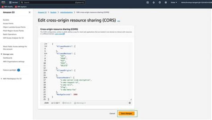 # Define the configuration rulescors_configuration = { 'CORSRules': [{ 'AllowedHeaders': ['Authorization'], 'AllowedMethods': ['GET', 'PUT'], 'AllowedOrigins': ['*'], 'ExposeHeaders': ['GET', 'PUT'], 'MaxAgeSeconds': 3000 }]}# Set the CORS configurations3 = boto3.client('s3')s3.put_bucket_cors(Bucket='BUCKET_NAME', CORSConfiguration=cors_configuration)