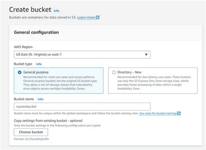 General purpose buckets - For information about bucket naming restrictions, see Bucket naming rules in the Amazon S3 User Guide.