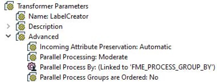 Return to the custom transformer definition (the BuildingValidator tab). Look in the Navigator window for the Parallel Processing parameter. Double-click it and set the level of processing to Moderate: