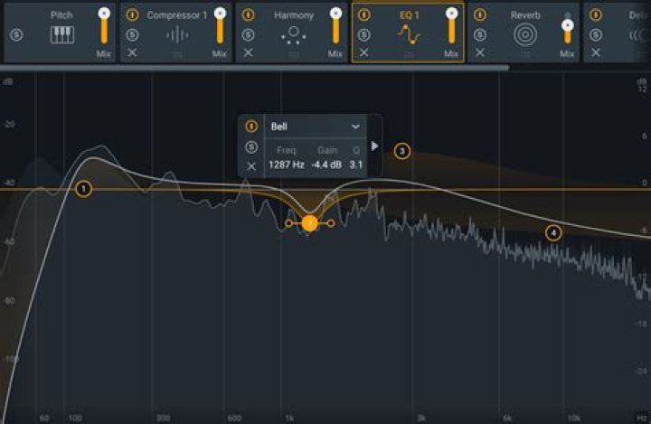 - Use a Bell filter with Dynamic Frequency Mode enabled to follow and cut harsh vocal resonances.