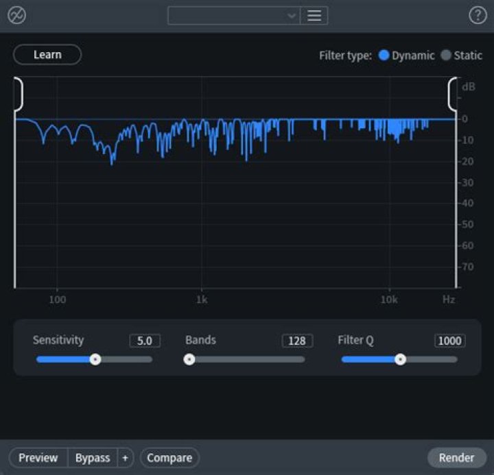 - BANDS: Controls the number of dynamic notch filters, which update their gains based on the input signal to avoid ringing. Adjust to higher values for complex hums, at the expense of transparency.