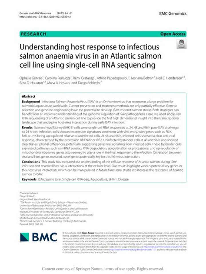 Infectious salmon anaemia (ISA) is a viral disease mainly affecting farmed Atlantic salmon in seawater, although some cases have been reported in freshwater. Other susceptible species include rainbow trout and brown trout.