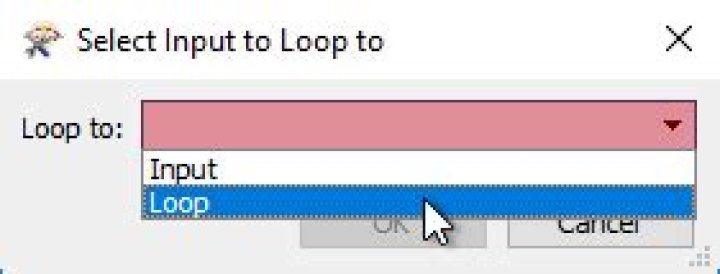 When a loop object is placed you are asked which Input object it is to be looped to: