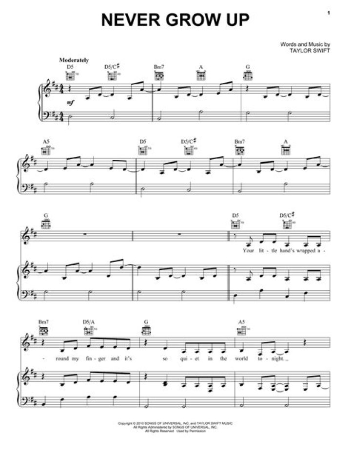 My legal team said that this is definitely NOT typical, and they have actually never ever seen an NDA like this provided unless it was to silence an attack accuser by paying them off. He would never even quote my group a price. These master recordings were not for sale to me - never grow up taylor swift chords." Swift continued that she remains in the procedure of re-recording her old music.