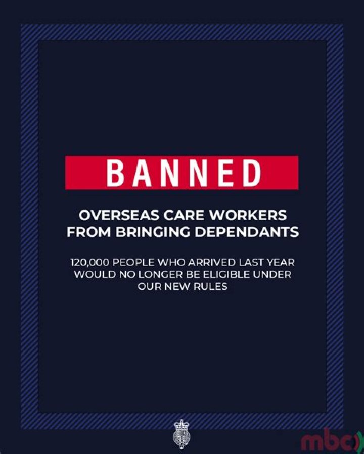 Care workers will now be restricted from bringing dependants, after a disproportionate 120,000 dependants accompanied 100,000 workers on the route last year.