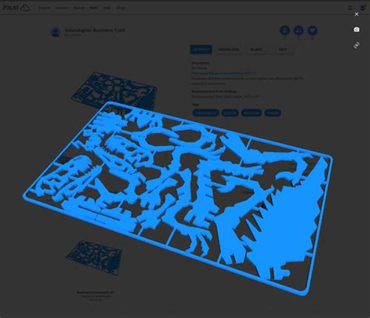 Figure 8.14: Velociraptor Business Card object: camera clicked on 3D visualization overlay