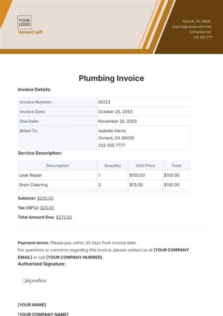- Plumbing Invoice