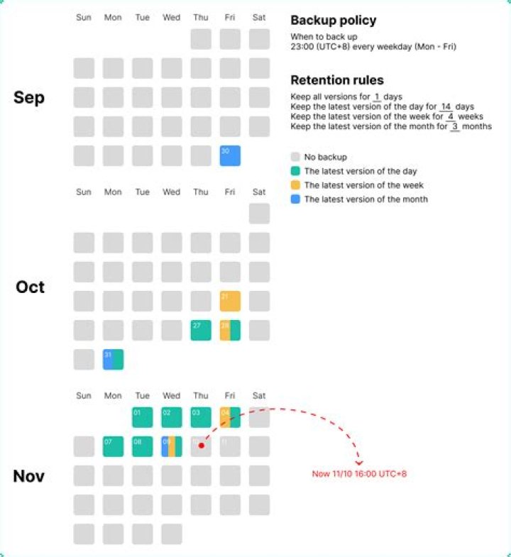 •Time-based rules should be as specific as possible (e.g. ‘Keep one generation every week on or before Sunday at 11:59PM’ for 1 Month) instead of being generic (like ‘Keep one generation every week for 1 Month).