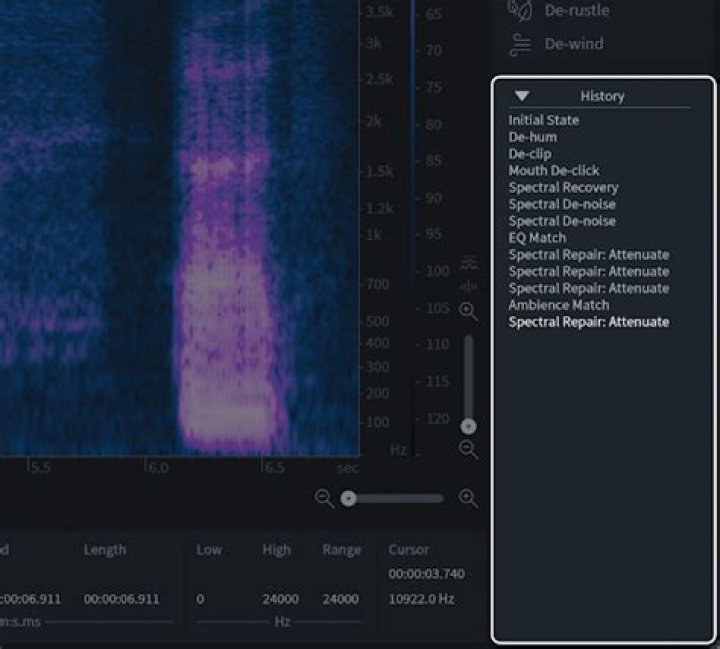 - De-hum: Remove hum, buzz and interference at any frequency with a new Dynamic mode that finds and targets objectionable sounds.